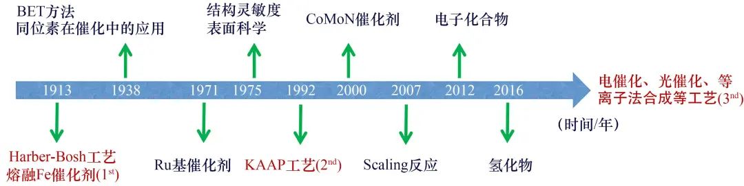 與氫類似,根據(jù)原料中氫氣的碳足跡,合成氨被分為灰氨、藍氨和綠氨?;野敝械臍錃鈦碓从谔烊粴饣蛘呙禾?,由傳統(tǒng)的Haber-Bosch高溫催化工藝制備而成。藍氨是將灰氨生產(chǎn)過程中的二氧化碳進行捕集。綠氨是基于可再生能源提供能量來源的前提下,以水為原料提供綠氫,然后與氮氣通過熱催化或者電催化等新型低碳技術制備而成。綠氨是可再生能源消納的重要方式,也是實現(xiàn)碳減排的重要途經(jīng)。氨能作為氫能補充,綠氨合成將會成為氫能領域的重要應用之一,合成氨技術未來也勢必會朝著低碳化合成技術發(fā)展。