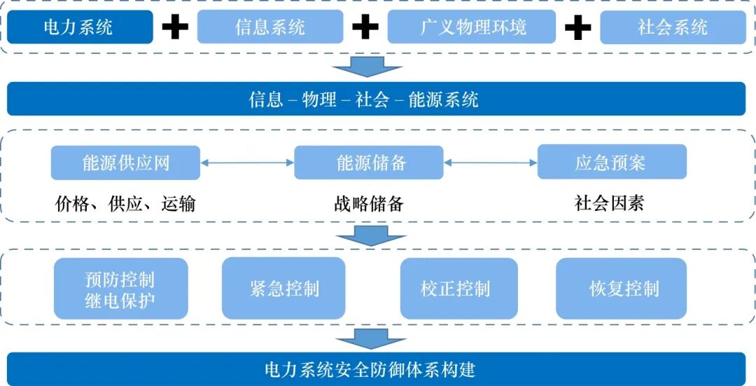 電力安全是能源轉(zhuǎn)型發(fā)展的底線。近年來,世界多國電力安全問題頻發(fā),如烏克蘭電網(wǎng)系統(tǒng)遭網(wǎng)絡(luò)攻擊而中斷(2015年)、美國得克薩斯州大停電(2021年)、我國東北部分地區(qū)拉閘限電(2021年)、我國四川省大規(guī)模高溫限電(2022年)等。2021年3月,我國首次提出構(gòu)建新型電力系統(tǒng),這是能源電力轉(zhuǎn)型的必然要求、實(shí)現(xiàn)“雙碳”目標(biāo)的重要途徑。新型電力系統(tǒng)以確保能源電力安全為基本前提,具有電力電源清潔化,電力系統(tǒng)柔性化、數(shù)字化、電力電子化的內(nèi)在本質(zhì)特征。隨著傳統(tǒng)電力系統(tǒng)向新型電力系統(tǒng)轉(zhuǎn)型升級不斷加快,一次能源特性、電源布局功能、電網(wǎng)形態(tài)規(guī)模、負(fù)荷結(jié)構(gòu)特性等都發(fā)生深刻變化;新能源的強(qiáng)不確定性、低保障性、電網(wǎng)靈活調(diào)節(jié)、多能源融合、信息網(wǎng)絡(luò)防御等因素,都與新型電力系統(tǒng)的安全穩(wěn)定發(fā)展密切關(guān)聯(lián)。