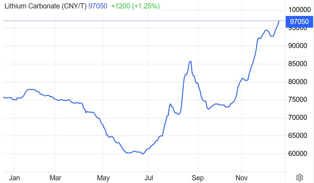 圖 2025年碳酸鋰價(jià)格趨勢(shì)