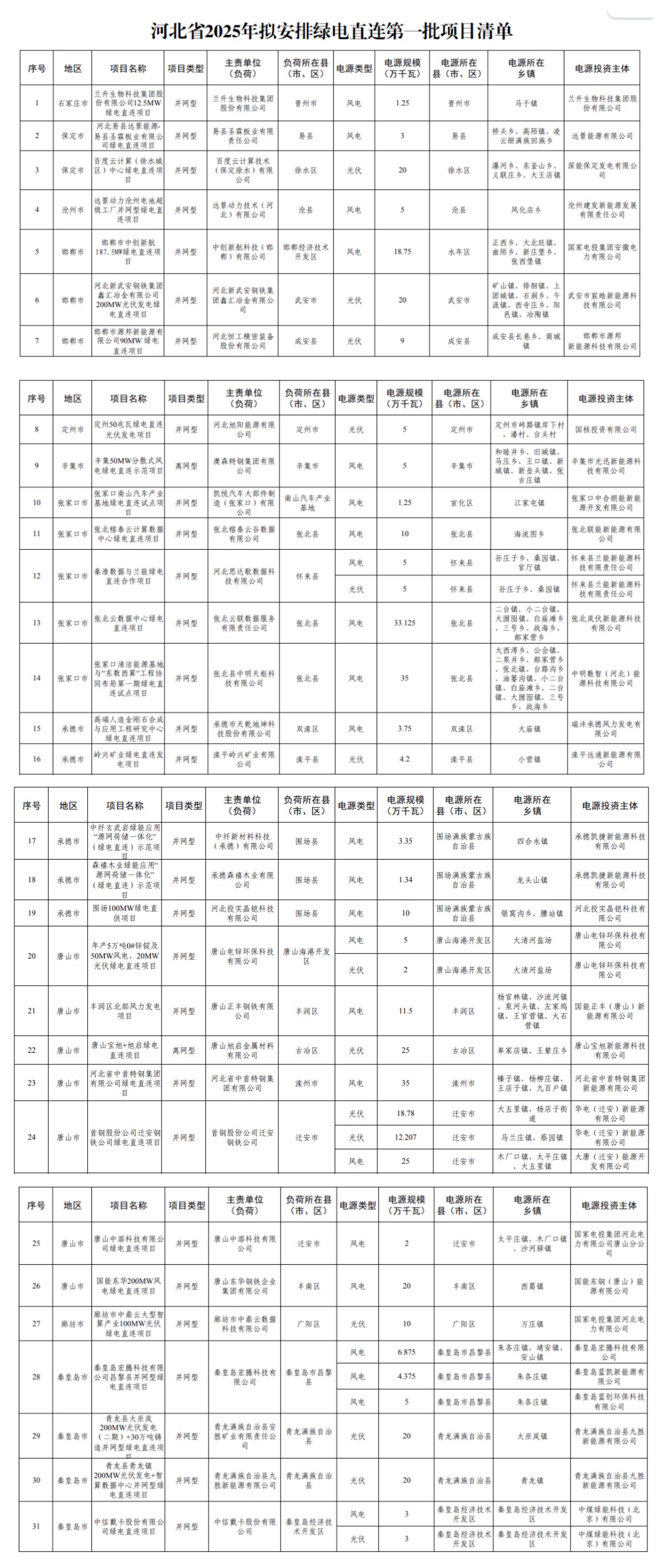 附件:河北省2025年擬安排綠電直連第一批項(xiàng)目清單
