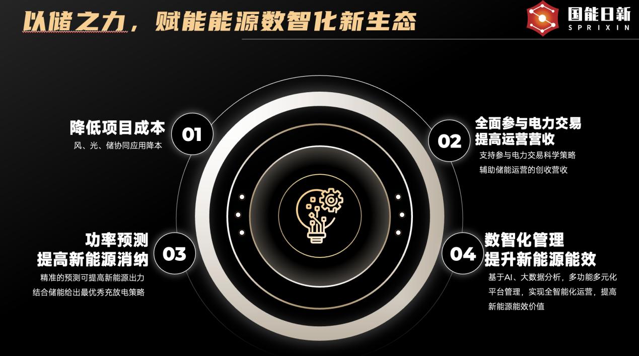 儲(chǔ)能的應(yīng)用場(chǎng)景日益多元化,從大型新能源電站的配套,到電網(wǎng)側(cè)的獨(dú)立儲(chǔ)能,再到工商業(yè)園區(qū)的用戶側(cè)應(yīng)用,每種場(chǎng)景對(duì)AI的需求都截然不同。國(guó)能日新在應(yīng)對(duì)儲(chǔ)能應(yīng)用差異化需求時(shí),提出了一套從精準(zhǔn)預(yù)測(cè)到協(xié)同應(yīng)用,最終實(shí)現(xiàn)多元收益的閉環(huán)解決方案。