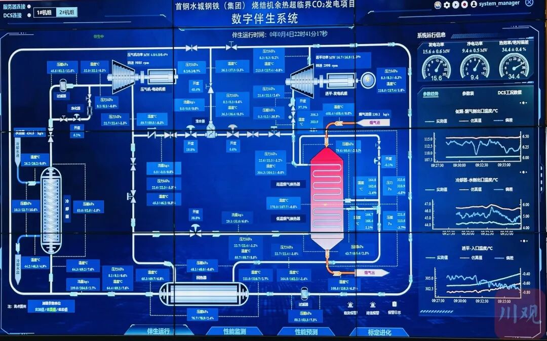 “超碳一號”示范工程是中核集團中國核動力研究設(shè)計院(簡稱“核動力院”)與濟鋼集團國際工程技術(shù)有限公司(簡稱“濟鋼國際”)、首鋼水城鋼鐵(集團)有限責(zé)任公司共同推進(jìn)的全球首套2×15兆瓦超臨界二氧化碳燒結(jié)余熱發(fā)電項目。相比現(xiàn)役燒結(jié)余熱蒸汽發(fā)電技術(shù),“超碳一號”的發(fā)電效率提升85%以上,凈發(fā)電量提升50%以上,相當(dāng)于每年多發(fā)7000萬度電。同時,由于系統(tǒng)簡化、設(shè)備減少、運維便利,場地需求減小50%。