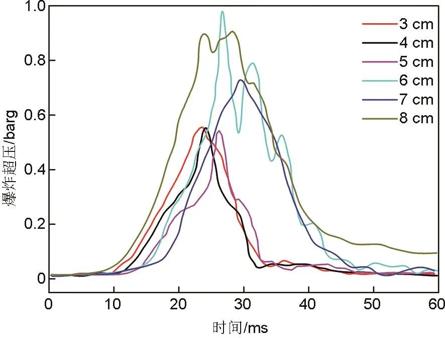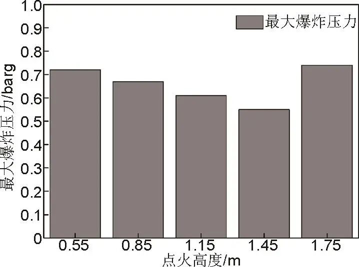 圖11 不同點火高度對爆炸最大壓力的影響