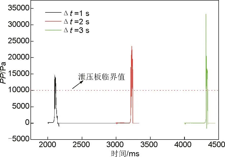 圖9 泄漏前期爆炸后相鄰艙泄壓板受到的壓力變化
