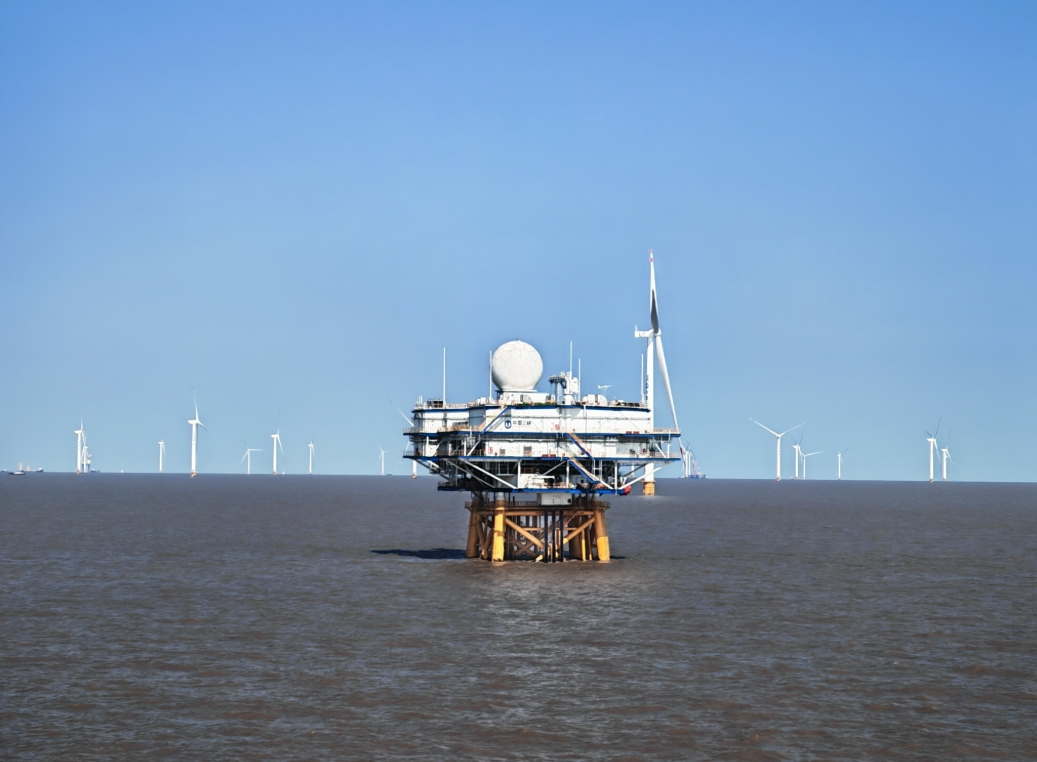 由于項(xiàng)目作業(yè)海域面積較大,為了盡可能精準(zhǔn)地預(yù)測(cè)和利用好每一個(gè)施工窗口期,華東院設(shè)計(jì)建設(shè)了我國(guó)首個(gè)搭載氣象雷達(dá)的海上升壓站,升壓站位于鹽城市大豐區(qū)東北方向75千米的海域,搭載國(guó)內(nèi)最先進(jìn)的雙偏振S波段海上氣象雷達(dá),具備62.5米分辨率的高精度探測(cè)能力,監(jiān)測(cè)半徑覆蓋230公里海域,支撐深遠(yuǎn)海域精準(zhǔn)監(jiān)測(cè)天氣,提升區(qū)域應(yīng)急響應(yīng)效率,為將來更深、更遠(yuǎn)的海洋開發(fā)能源資源積累了寶貴經(jīng)驗(yàn)。