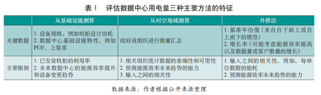此外,由于歷史上數(shù)據(jù)中心的規(guī)模和用電總量不大,在國民經(jīng)濟分類的行業(yè)分類以及中國統(tǒng)計年鑒中的電力消費統(tǒng)計中,數(shù)據(jù)中心的實際用電量沒有單列,常常被混合計入不同的行業(yè)范疇。因此,數(shù)據(jù)中心用電量難以細分和確認,多數(shù)研究只能依據(jù)行業(yè)數(shù)據(jù)進行數(shù)據(jù)中心用電量推算。