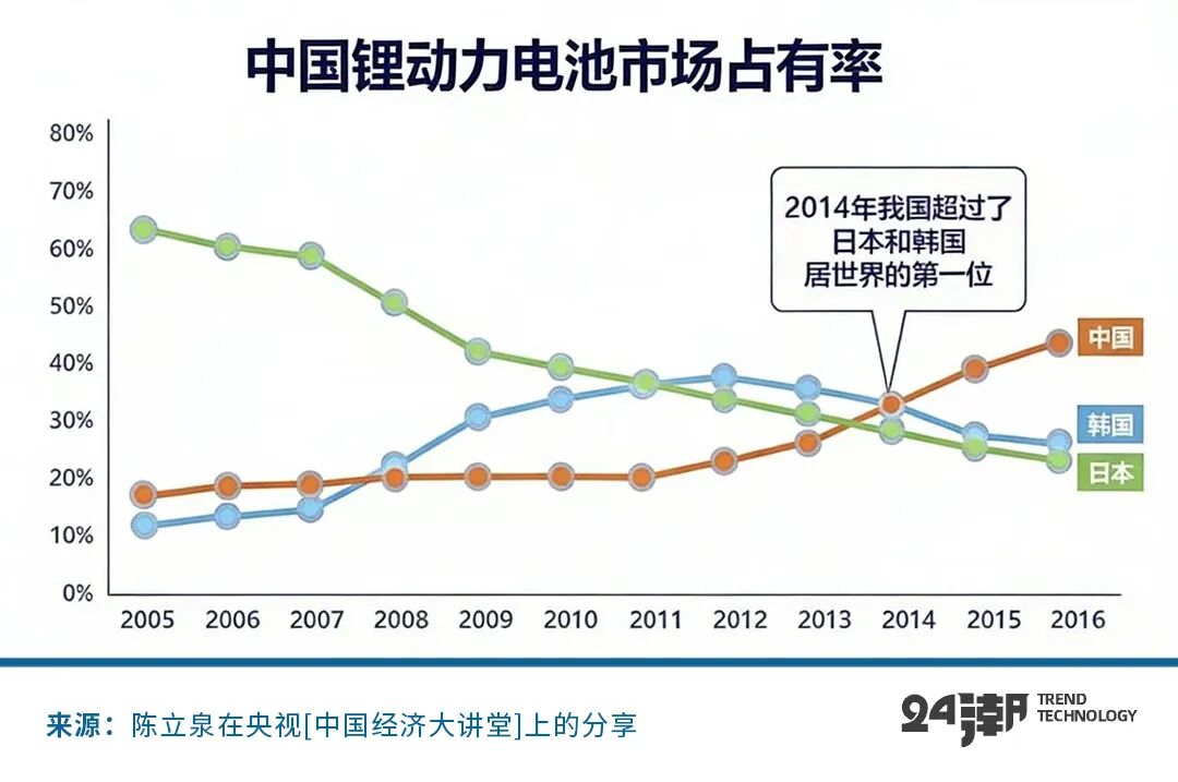 在陳立泉的協(xié)助下,寧德時代得以創(chuàng)辦和發(fā)展。2014年,我國鋰動力電池市場占有率就超越日韓,登頂全球第一;三年后,寧德時代裝機量反超日本松下公司,成為全球動力電池絕對領(lǐng)頭羊。