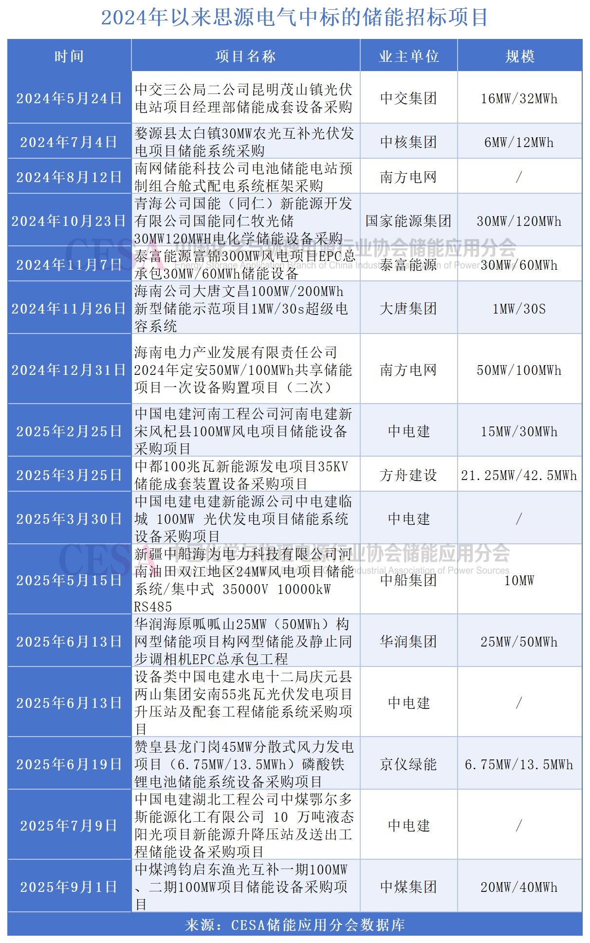 招投標(biāo)市場(chǎng)中,據(jù)CESA儲(chǔ)能應(yīng)用分會(huì)不完全統(tǒng)計(jì),2024年5月以來(lái),思源電氣中標(biāo)了16個(gè)儲(chǔ)能項(xiàng)目采購(gòu),也有數(shù)據(jù)顯示,僅在2024年,該公司儲(chǔ)能系統(tǒng)累計(jì)中標(biāo)約2.4GWh,市場(chǎng)份額居行業(yè)前列。