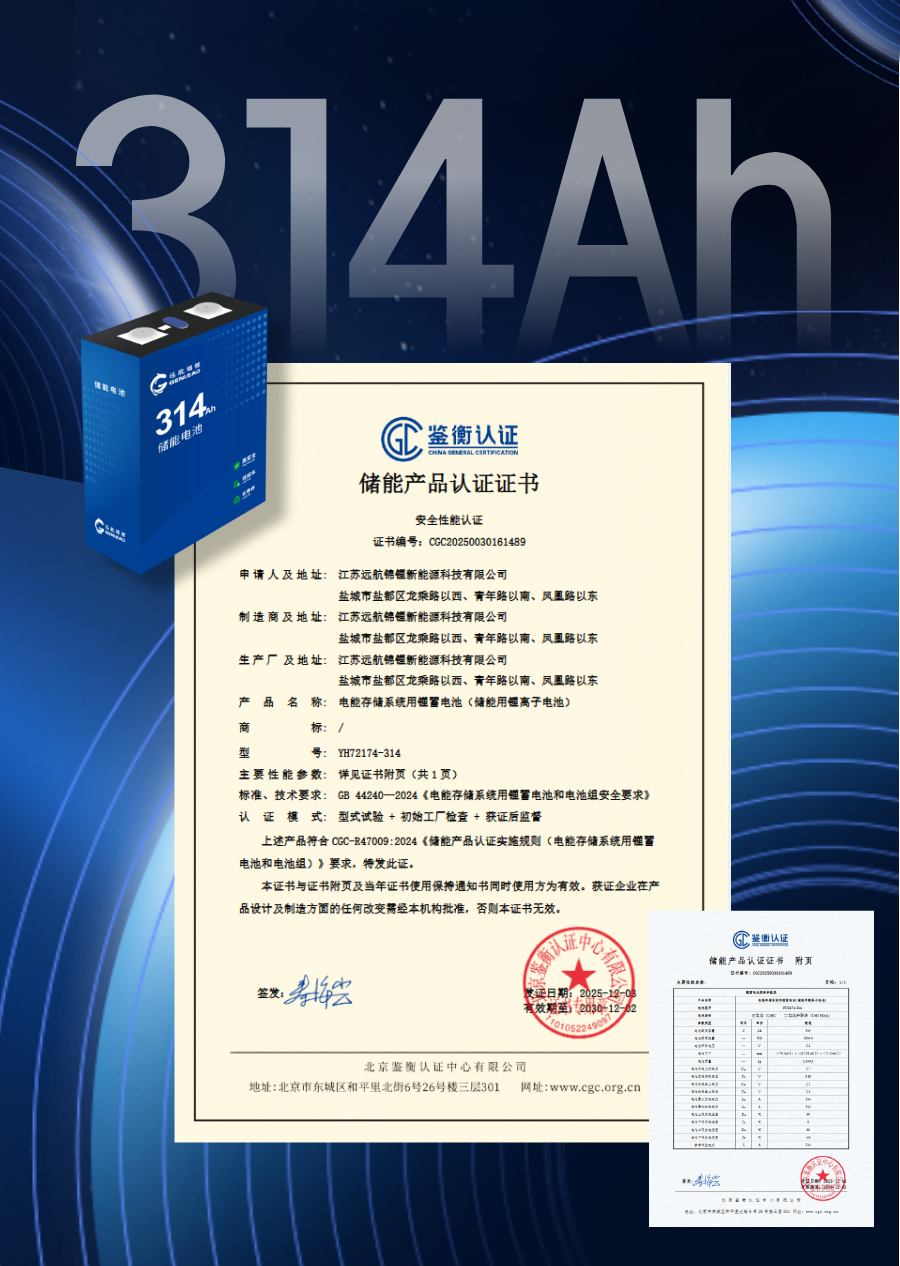 “此次通過鑒衡認證依據(jù)GB 44240-2024開展的測試,是對我們技術(shù)路線和產(chǎn)品質(zhì)量的充分肯定?!边h航錦鋰相關(guān)負責人表示。公司始終將安全與可靠性置于產(chǎn)品研發(fā)的首位,314Ah電芯在設(shè)計階段即植入“預防、阻斷、耐受”的多維安全理念,從源頭上管控風險。