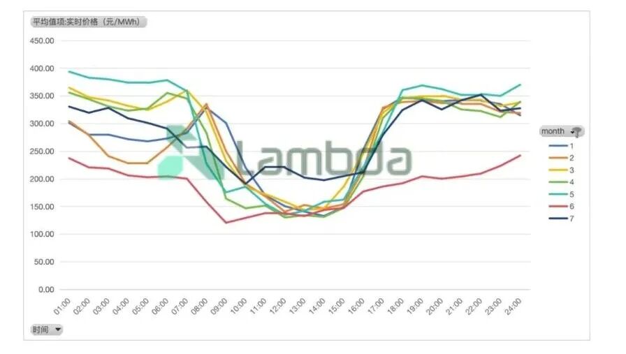 圖2:安徽省2025年1—7月月均實(shí)時(shí)價(jià)格曲線