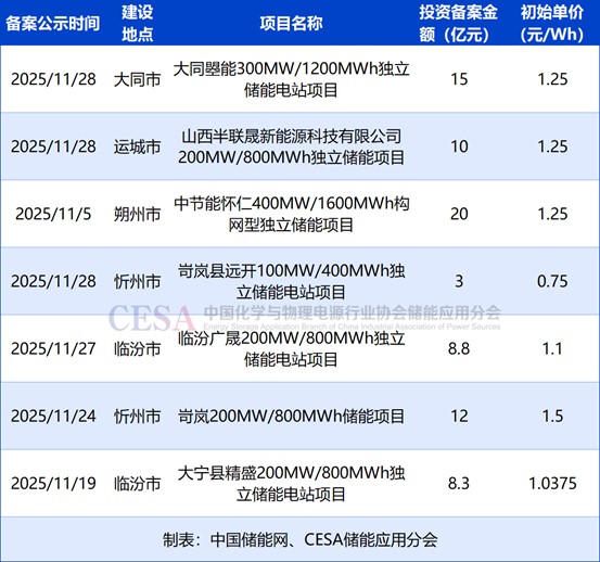 表 2025年11月山西新增備案長時儲能項目
