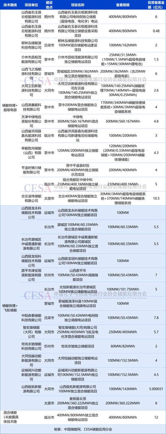 表 2025年11月山西省新增備案混合儲能電站項目
