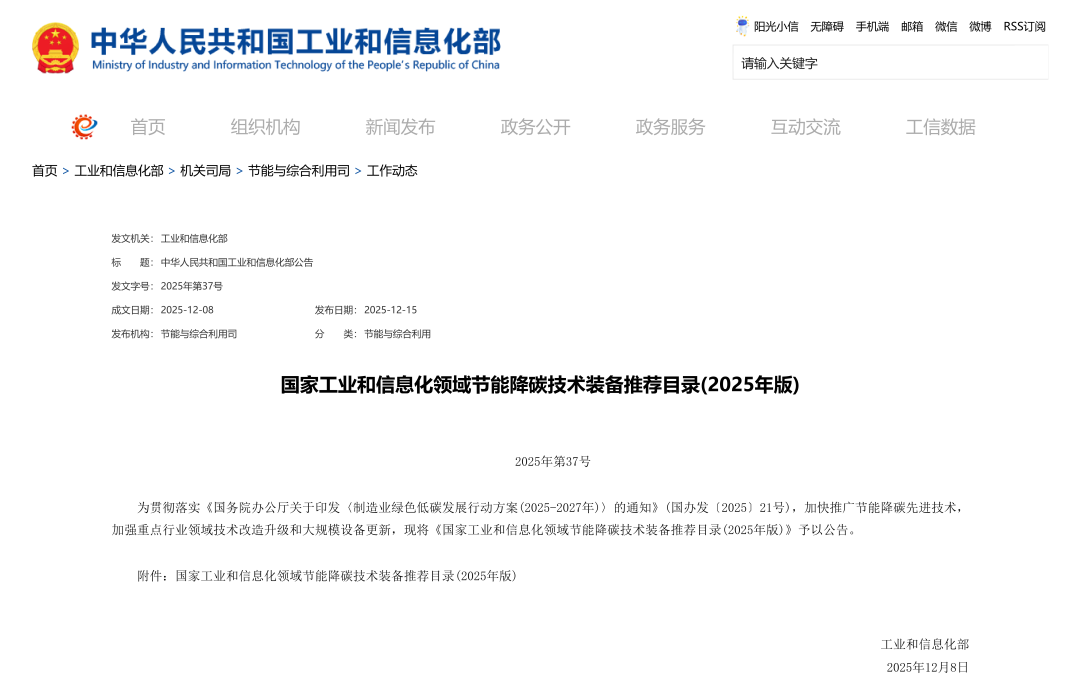 近日,國家工信部節(jié)能與綜合利用司公布了《國家工業(yè)和信息化領(lǐng)域節(jié)能降碳技術(shù)裝備推薦目錄(2025年版)》(以下簡稱“推薦目錄”),加快推廣節(jié)能降碳先進(jìn)技術(shù),加強(qiáng)重點(diǎn)行業(yè)領(lǐng)域技術(shù)改造升級和大規(guī)模設(shè)備更新。
