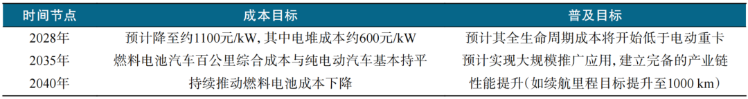 表2 成本降低目標(biāo)和普及時間預(yù)測表