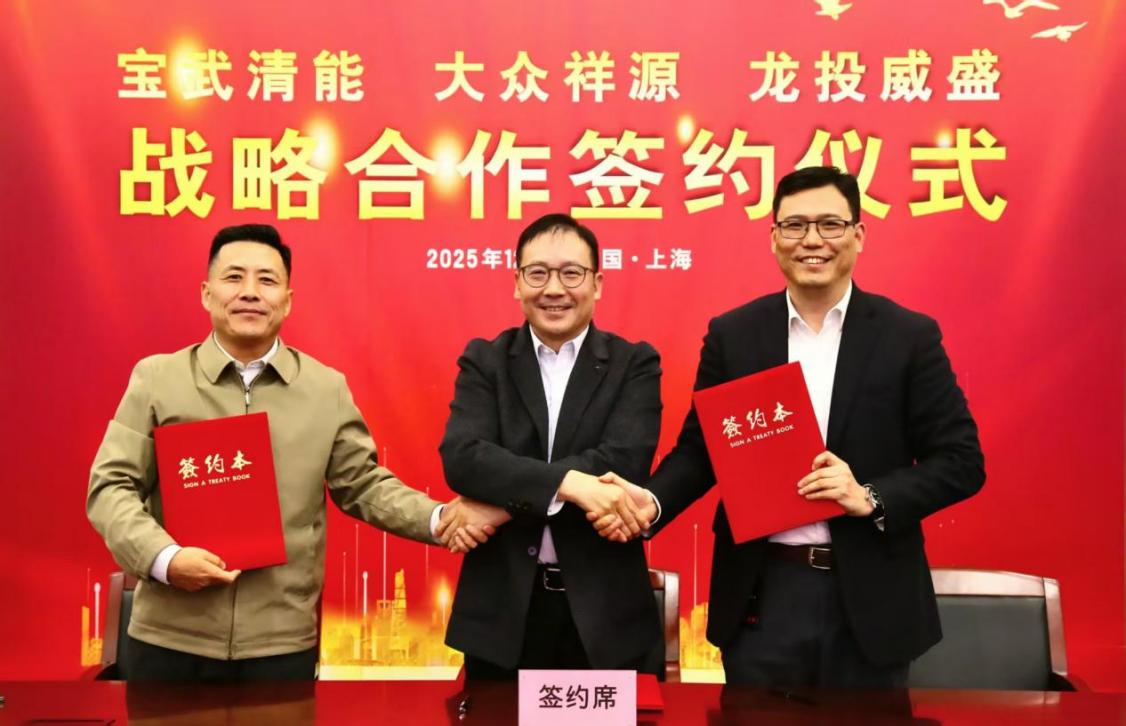 寶武清能與大眾聯(lián)合、大眾祥源、龍投威盛相關(guān)領(lǐng)導(dǎo)見(jiàn)證簽約