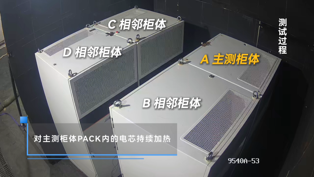 主測柜體:單個PACK被觸發(fā)熱失控時,失控電芯的溫度峰值達800℃以上,然而,柜體穩(wěn)如磐石——未起火、未爆炸、未解體,內(nèi)部主體結(jié)構(gòu)保持完整,外觀也無明顯損傷。