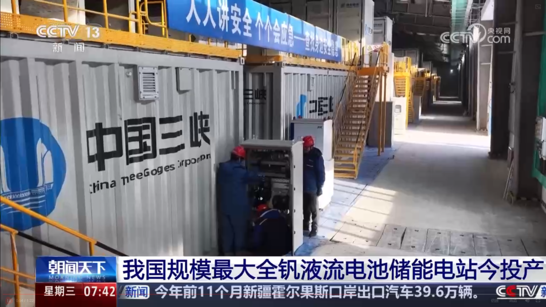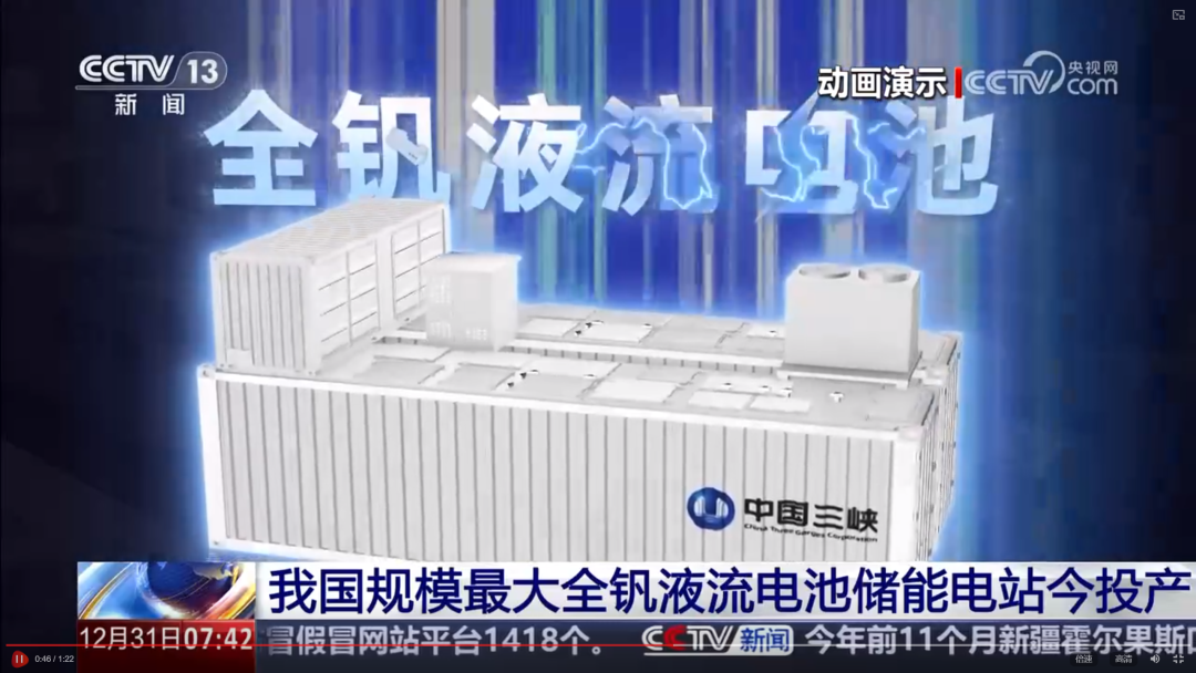 中國(guó)儲(chǔ)能網(wǎng)訊:今天(12月31日),我國(guó)規(guī)模最大全釩液流電池儲(chǔ)能電站,三峽集團(tuán)新疆吉木薩爾全釩液流儲(chǔ)能電站實(shí)現(xiàn)全容量投產(chǎn)運(yùn)行。