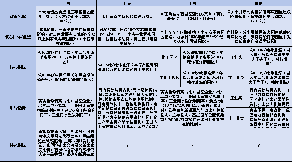 在國家政策引導下,各地迅速響應,結合自身產業(yè)結構與資源稟賦,出臺省級零碳園區(qū)建設方案或實施細則等,對園區(qū)建設目標、準入標準及實施路徑提出差異化要求,推動零碳建設從國家部署落實為地方行動。