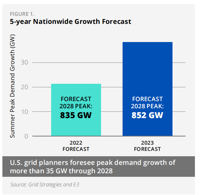 美國(guó)電網(wǎng)運(yùn)營(yíng)商已經(jīng)開(kāi)始意識(shí)到這一發(fā)展。在2022年至2023年間,電網(wǎng)規(guī)劃人員將其五年負(fù)荷增長(zhǎng)預(yù)測(cè)幾乎提高了一倍,一些人警告說(shuō),即使是這些預(yù)測(cè)也可能偏低。2