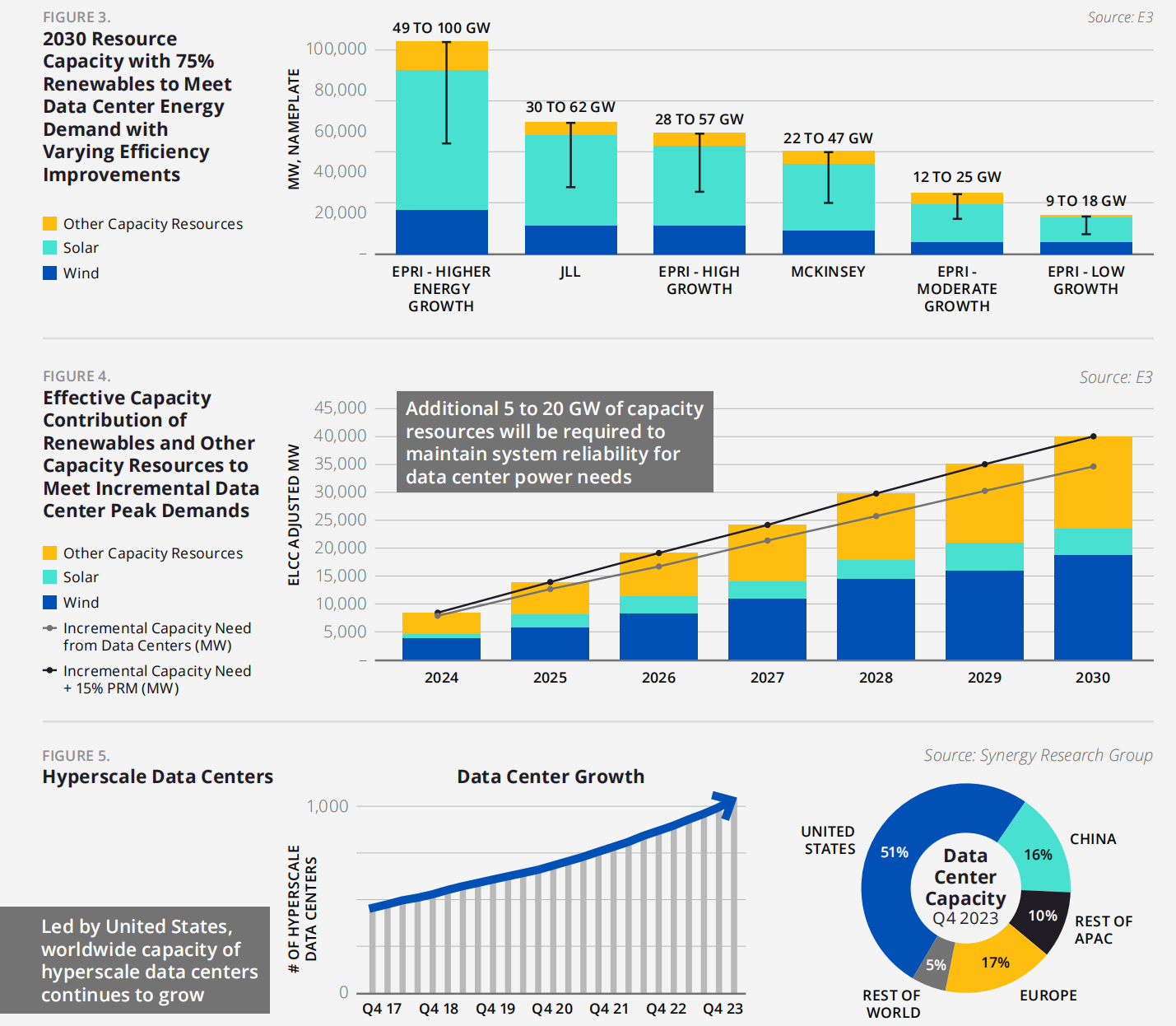能源咨詢公司E3估計(jì),到2030年,美國(guó)將需要額外20至100吉瓦的發(fā)電容量,以滿足數(shù)據(jù)中心的能源和電網(wǎng)可靠性需求。E3的分析認(rèn)為,對(duì)額外容量資源的需求在5至20吉瓦之間。