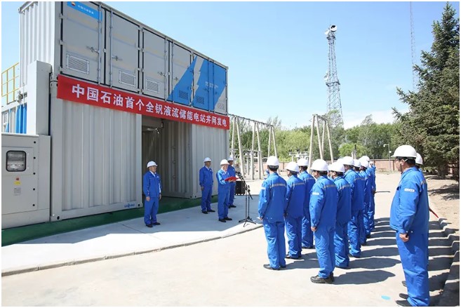 5月,中國石油首個全釩液流儲能項目并網(wǎng)發(fā)電儀式舉行。