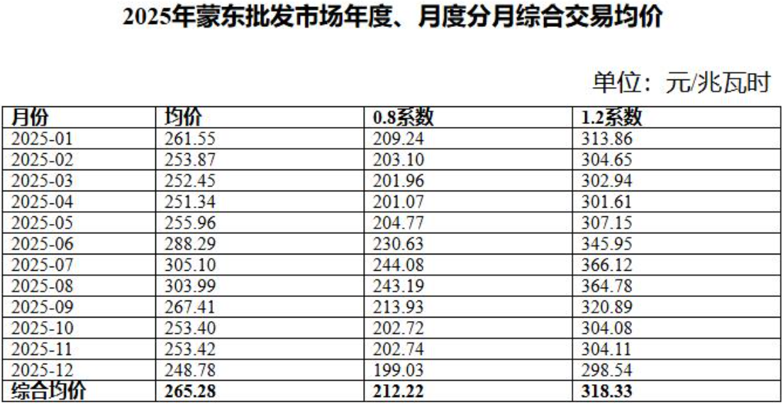 2026年內(nèi)蒙古東部電力交易市場中長期交易