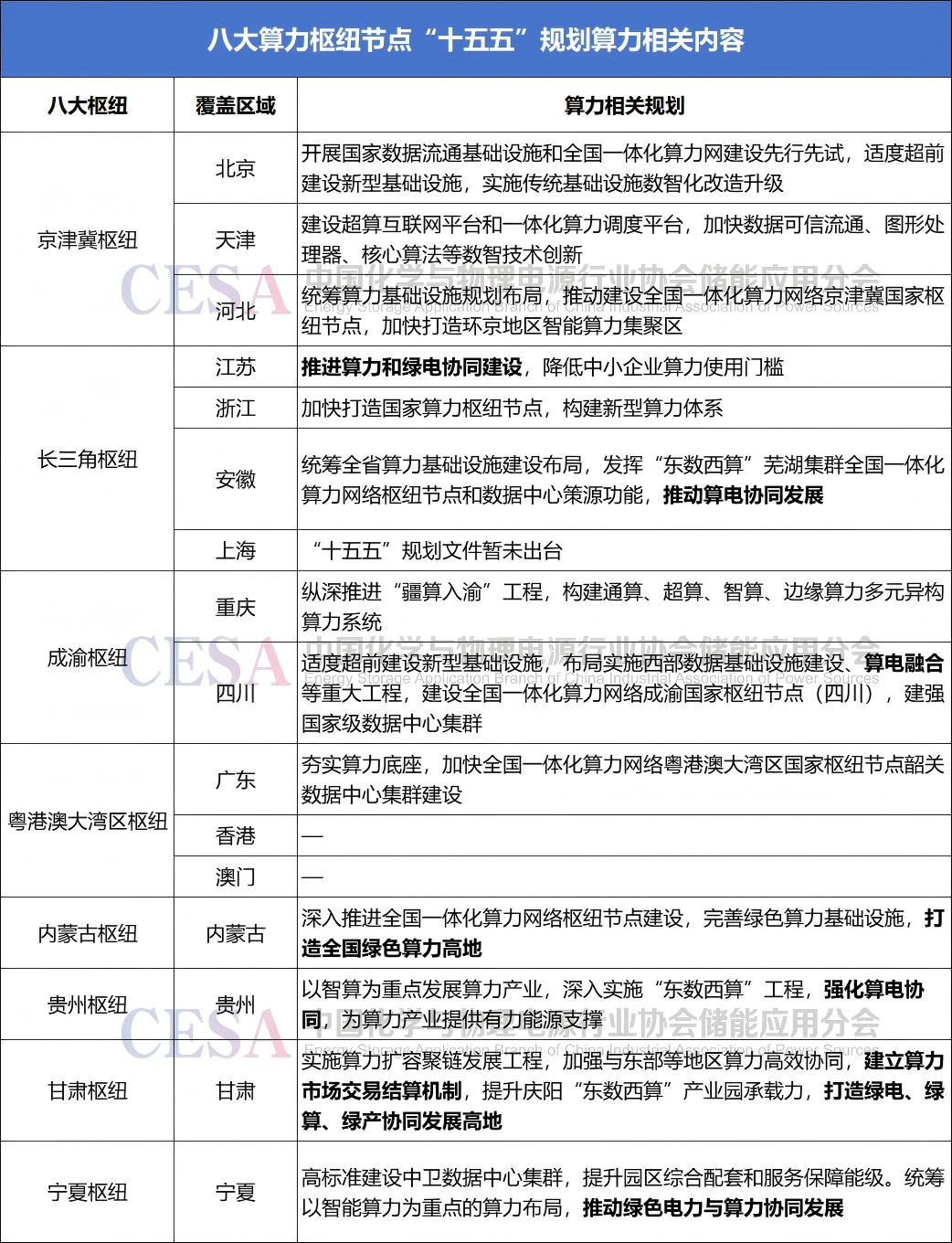 “ESCN源網(wǎng)荷儲與電力市場”梳理八大算力樞紐節(jié)點覆蓋區(qū)域的“十五五”規(guī)劃發(fā)現(xiàn),江蘇、安徽、四川、貴州、甘肅、寧夏等多省,在規(guī)劃中明確提出,“推動算力、綠色電力協(xié)同發(fā)展”。
