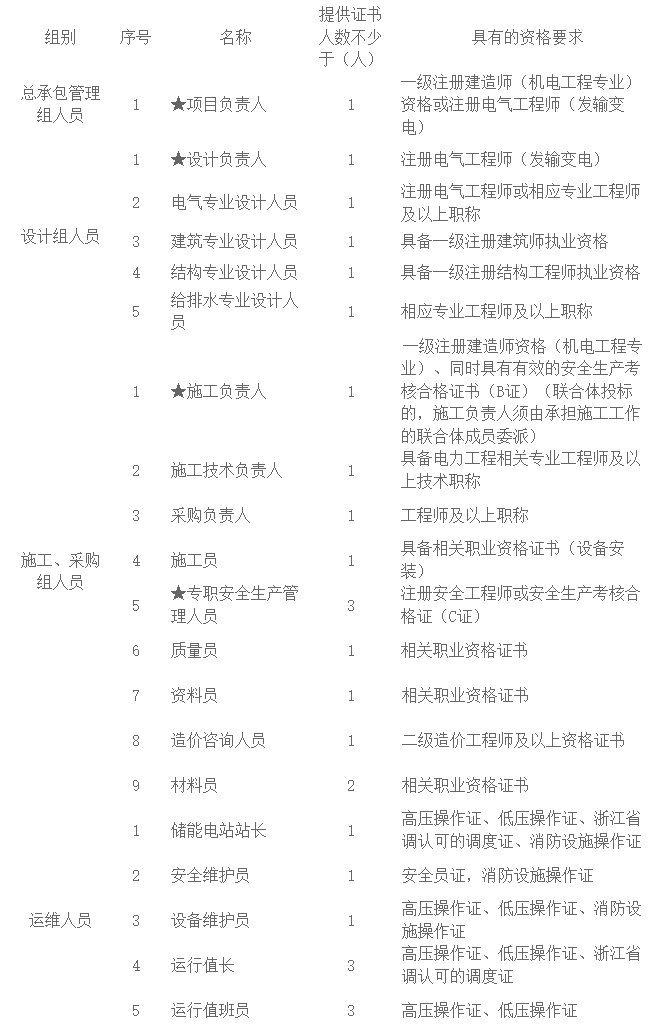 3.7擬派工程總承包項目負(fù)責(zé)人具有注冊在投標(biāo)人單位的一級注冊建造師(機(jī)電工程專業(yè))資格或注冊電氣工程師(發(fā)輸變電)執(zhí)業(yè)資格(采用聯(lián)合體形式投標(biāo)的,必須為聯(lián)合體牽頭人單位人員);