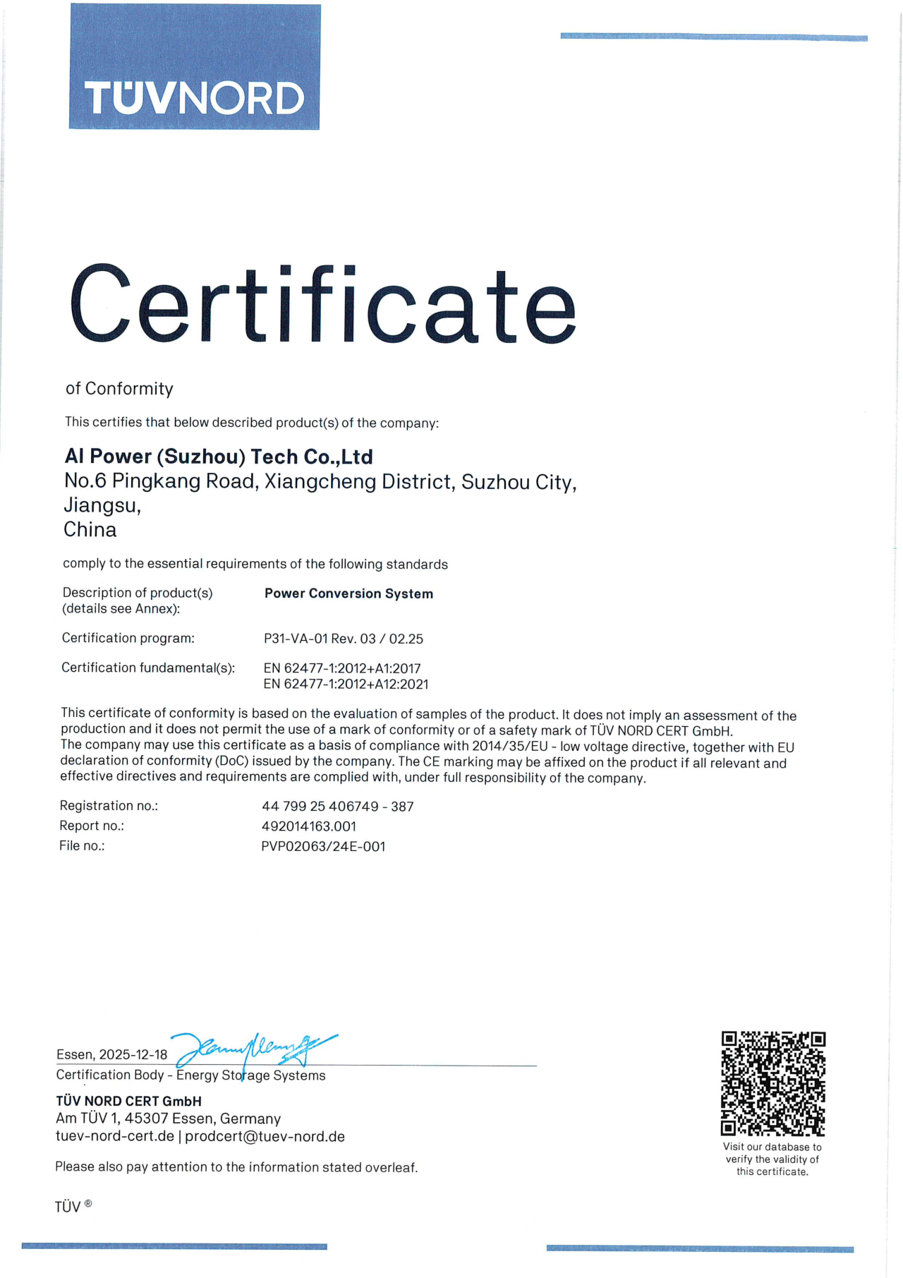 中國儲(chǔ)能網(wǎng)訊:近期,蘇州鈞灝電力有限公司(以下簡稱“鈞灝電力”)AIPS-100A構(gòu)網(wǎng)型儲(chǔ)能變流器榮膺TUV認(rèn)證。這是繼 AIPS-30/50A ,AIPS-630/1250A順利通過認(rèn)證后,鈞灝電力構(gòu)網(wǎng)型PCS產(chǎn)品再傳捷報(bào)。這是一份基于IEC國際安全規(guī)范的權(quán)威性能鑒定報(bào)告。它標(biāo)志著蘇州鈞灝系列構(gòu)網(wǎng)型PCS產(chǎn)品在極限條件下,成功通過了從硬件到軟件系統(tǒng)可靠性驗(yàn)證,在安全、效能與構(gòu)網(wǎng)適應(yīng)性三個(gè)維度均達(dá)到了國際一流水準(zhǔn),也標(biāo)志著蘇州鈞灝組串式的PCS從30KW/50KW/100KW/125KW的DCAC交流和DCDC直流產(chǎn)品系列更進(jìn)一步豐富了。