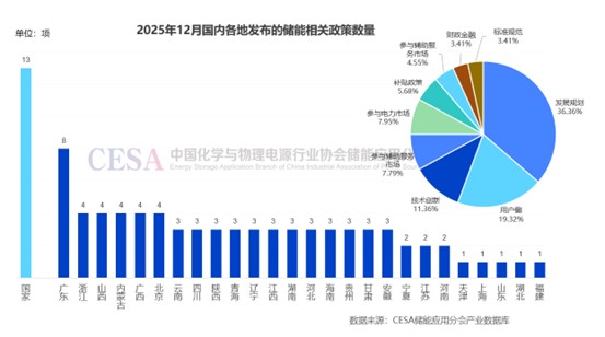 中國儲能網(wǎng)訊:據(jù)CESA儲能應(yīng)用分會產(chǎn)業(yè)數(shù)據(jù)庫不完全統(tǒng)計,2025年12月份共發(fā)布儲能相關(guān)政策88項,國家層面發(fā)布13項,涉及技術(shù)創(chuàng)新、發(fā)展規(guī)劃、參與電力市場、監(jiān)督管理、標(biāo)準(zhǔn)規(guī)范等多個方面。