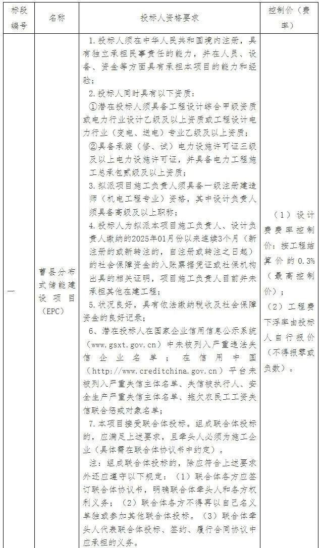 6、招標(biāo)范圍:2025年曹縣分布式儲(chǔ)能建設(shè)項(xiàng)目(EPC)的工程設(shè)計(jì)、施工等。(具體詳見(jiàn)招標(biāo)文件);