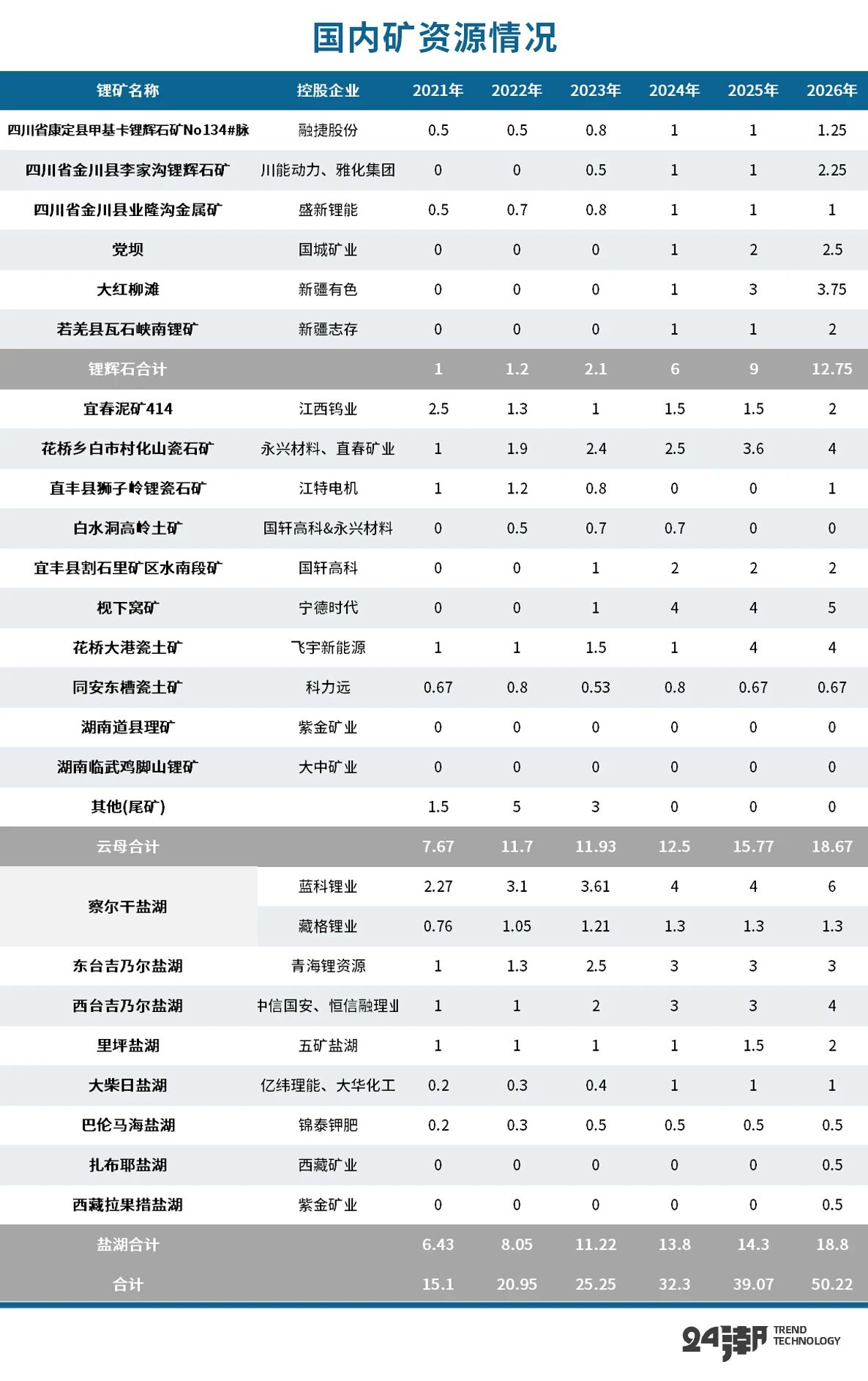 回到國內(nèi)市場,鋰資源供給呈現(xiàn)持續(xù)增長趨勢。