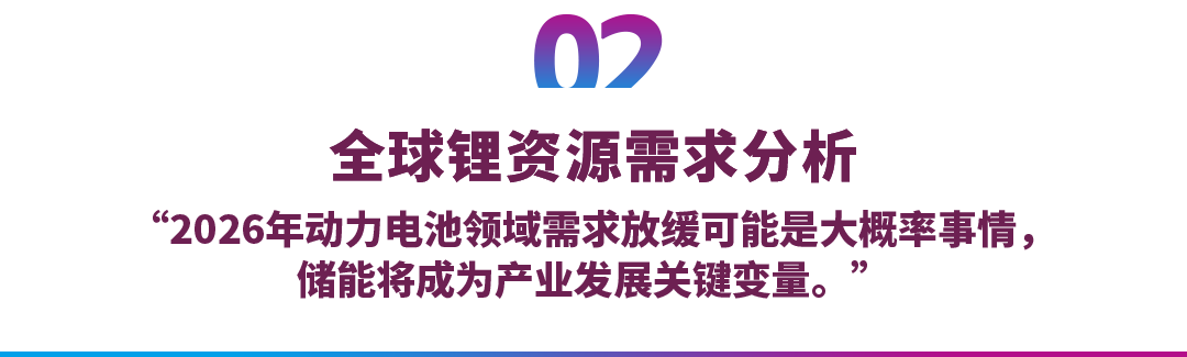 展望2026年,供應(yīng)端將迎來本輪產(chǎn)能集中投放的最后高峰,中國與非洲項目仍是增產(chǎn)主力,同時澳洲部分礦山可能隨鋰價回暖而復(fù)產(chǎn)。隨著非洲鋰資源出口條件改善,進口量也有望回升。需求端將保持增長但結(jié)構(gòu)分化:動力市場受國內(nèi)外政策節(jié)奏影響,增速預(yù)計放緩,但技術(shù)進步與細分領(lǐng)域仍提供支撐;儲能市場則在2025年超預(yù)期增長的基礎(chǔ)上,憑借海內(nèi)外訂單的持續(xù)發(fā)力,有望成為需求端的關(guān)鍵增長引擎。