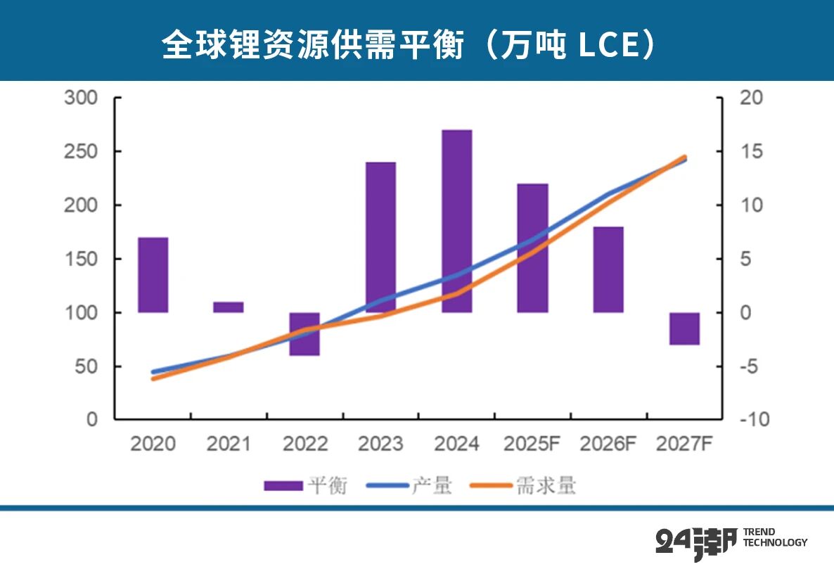 從全球供需平衡角度看,各機構(gòu)對2025年碳酸鋰海內(nèi)外需求量的統(tǒng)計口徑存在差異,預(yù)測結(jié)果可能不盡相同,但結(jié)合同比增速觀察,整體形勢已趨于明朗。2025年,全球鋰資源產(chǎn)量同比增長高于20%,而需求同比增長更高約30%以上,表明供應(yīng)過剩壓力已顯著緩解。