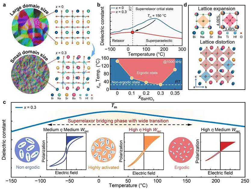 中國(guó)儲(chǔ)能網(wǎng)訊:近日,南昌航空大學(xué)動(dòng)力與能源學(xué)院(航空發(fā)動(dòng)機(jī)學(xué)院)謝兵牽頭,聯(lián)合北京科技大學(xué)、香港城市大學(xué)、澳大利亞伍倫貢大學(xué)等單位研究人員,在無(wú)鉛介質(zhì)陶瓷儲(chǔ)能領(lǐng)域取得重大突破。團(tuán)隊(duì)創(chuàng)新性提出并成功構(gòu)建了“超弛豫臨界態(tài)”,研制出兼具超高能量密度與高效率的新型無(wú)鉛儲(chǔ)能陶瓷,其綜合性能達(dá)到國(guó)際領(lǐng)先水平。該成果為下一代高功率脈沖儲(chǔ)能系統(tǒng)提供了變革性材料解決方案,尤其對(duì)航空航天飛行器高能效動(dòng)力系統(tǒng)、新能源汽車快充快放等尖端領(lǐng)域具有重大應(yīng)用前景。該研究成果發(fā)表于《自然·通訊》。