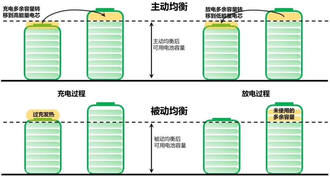 即使經過前面三步,電池包在長期使用中,仍會因為使用環(huán)境、老化速度不同出現(xiàn)一致性偏差。這一步的核心是“通過BMS(電池管理系統(tǒng))的動態(tài)均衡功能,實時調整電芯參數(shù),讓整包電芯保持一致”。BMS就像“團隊管理者”,隨時協(xié)調成員狀態(tài),具體分為兩種均衡方式: