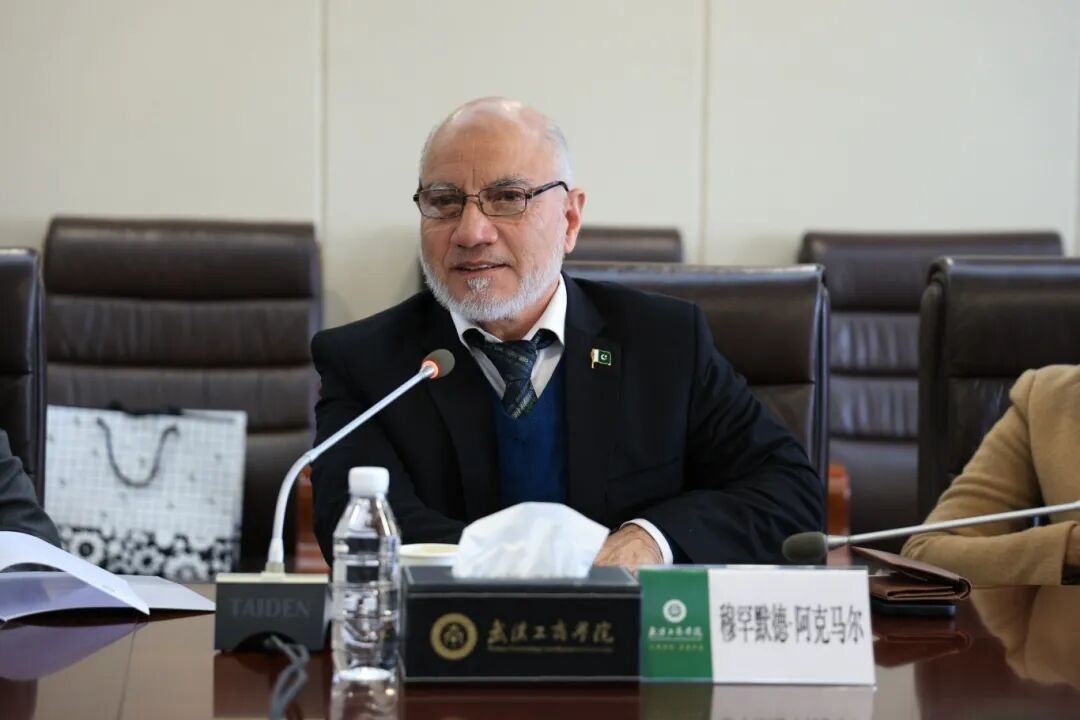 張俊代表全校師生對穆罕默德·阿克馬爾教授一行的來訪表示熱烈歡迎,他指出,作為一所注重應(yīng)用型人才培養(yǎng)的高校,學(xué)校始終堅(jiān)持開放辦學(xué),積極推進(jìn)與“一帶一路”沿線國家特別是巴基斯坦的教育交流,目前,學(xué)校已吸引了一批優(yōu)秀的巴基斯坦學(xué)生來校學(xué)習(xí)與研究。他特別介紹了學(xué)校在科技成果轉(zhuǎn)化與產(chǎn)業(yè)化方面的成效,尤其校企合作單位君集環(huán)境科技股份有限公司、湖北君安儲(chǔ)能科技有限公司等在水處理、新能源儲(chǔ)能等領(lǐng)域擁有核心技術(shù),與巴基斯坦在水資源保護(hù)、能源優(yōu)化等方面的需求高度契合,為雙方未來合作提供了扎實(shí)的產(chǎn)業(yè)基礎(chǔ)。在兩國共同推進(jìn)新時(shí)代中巴命運(yùn)共同體建設(shè)的背景下,他期待能與巴基斯坦科學(xué)基金會(huì)進(jìn)一步深化在教育發(fā)展、科研合作、人才培養(yǎng)模式以及中巴教育合作機(jī)制等領(lǐng)域的探討與合作,共同譜寫中巴教育合作的新篇章。