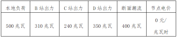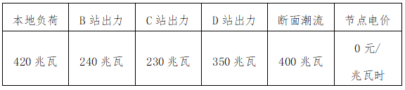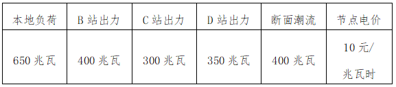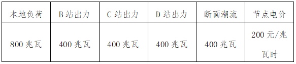 以外部負(fù)荷750兆瓦時出清結(jié)果為例,A變節(jié)點各場站出力、節(jié)點電價及斷面潮流數(shù)據(jù)見表1。