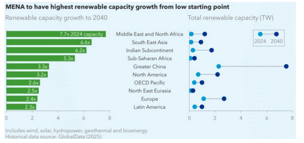 中東和北非(MENA)地區(qū)可再生能源增長(zhǎng)預(yù)測(cè)圖