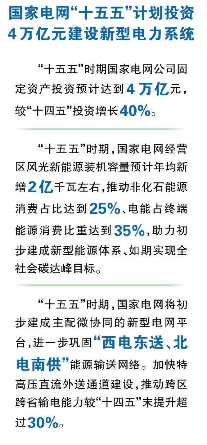 奮進“十五五”,國家電網(wǎng)公司將通過持續(xù)穩(wěn)定的高強度投資,加快建設以主干電網(wǎng)和配電網(wǎng)為重要基礎、智能微電網(wǎng)為有益補充的新型電網(wǎng)平臺,更好滿足經(jīng)濟社會高質量發(fā)展用電需要。