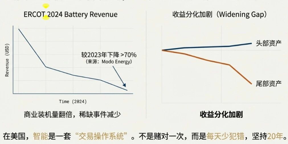 德州(ERCOT)則把另一面展示得更赤裸:當(dāng)裝機(jī)爆發(fā)、競(jìng)爭(zhēng)加劇,收益可能在一年內(nèi)顯著回落。