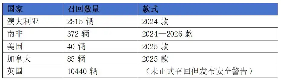 除巴西之外,澳大利亞、南非、美國(guó)、加拿大和英國(guó)都有不同數(shù)量的召回。