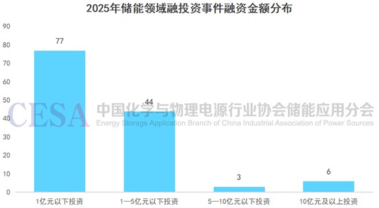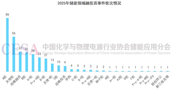 最后,從單筆融資金額的分布來看,1億元以下的小額融資多達77起,構(gòu)成了融資事件的絕對主體;而10億元以上的巨型融資僅有6起。這種分布結(jié)構(gòu)恰恰是當(dāng)前儲能產(chǎn)業(yè)投資邏輯的生動注腳。那77筆涓涓細流,主要匯聚于天使輪與A輪階段,它們是資本對硬核科技創(chuàng)新的堅定支持與耐心陪伴。