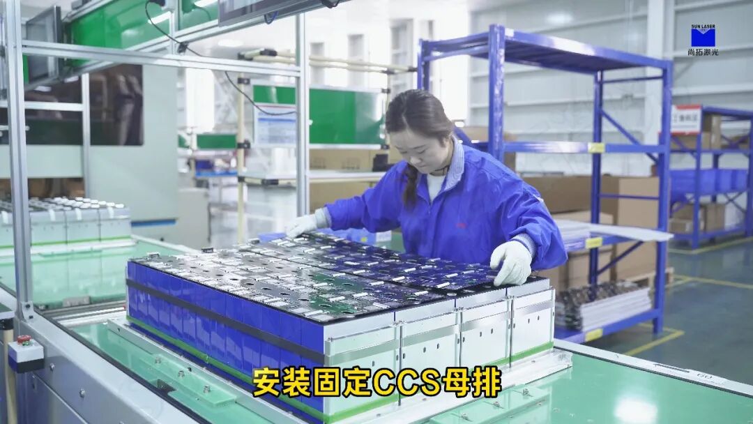 2.模組組裝:將已貼膠電芯進(jìn)行堆疊、捆扎、端板/側(cè)板加裝、CCS母排與采樣線束的裝配。