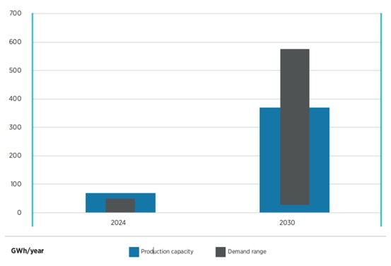 圖 鈉離子電池的需求與產(chǎn)能預(yù)測(cè)