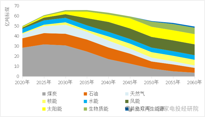 本報告綜合國家政策要求和眾多權威機構研究結果,基于碳排放約束,采用一次能源消費頂層控制與終端消費預測相結合的綜合測算體系,研判到2060年各階段我國能源消費總量和消費結構的變化趨勢。