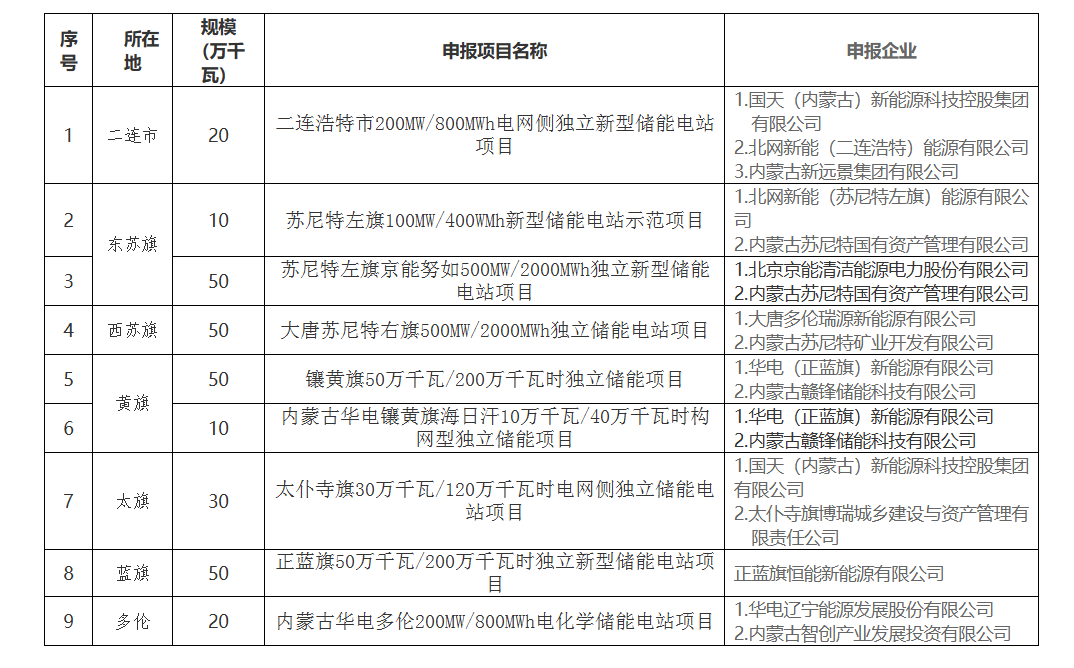 錫林郭勒盟2026—2027年自治區(qū)獨(dú)立新型儲(chǔ)能電站項(xiàng)目實(shí)施清單的公示