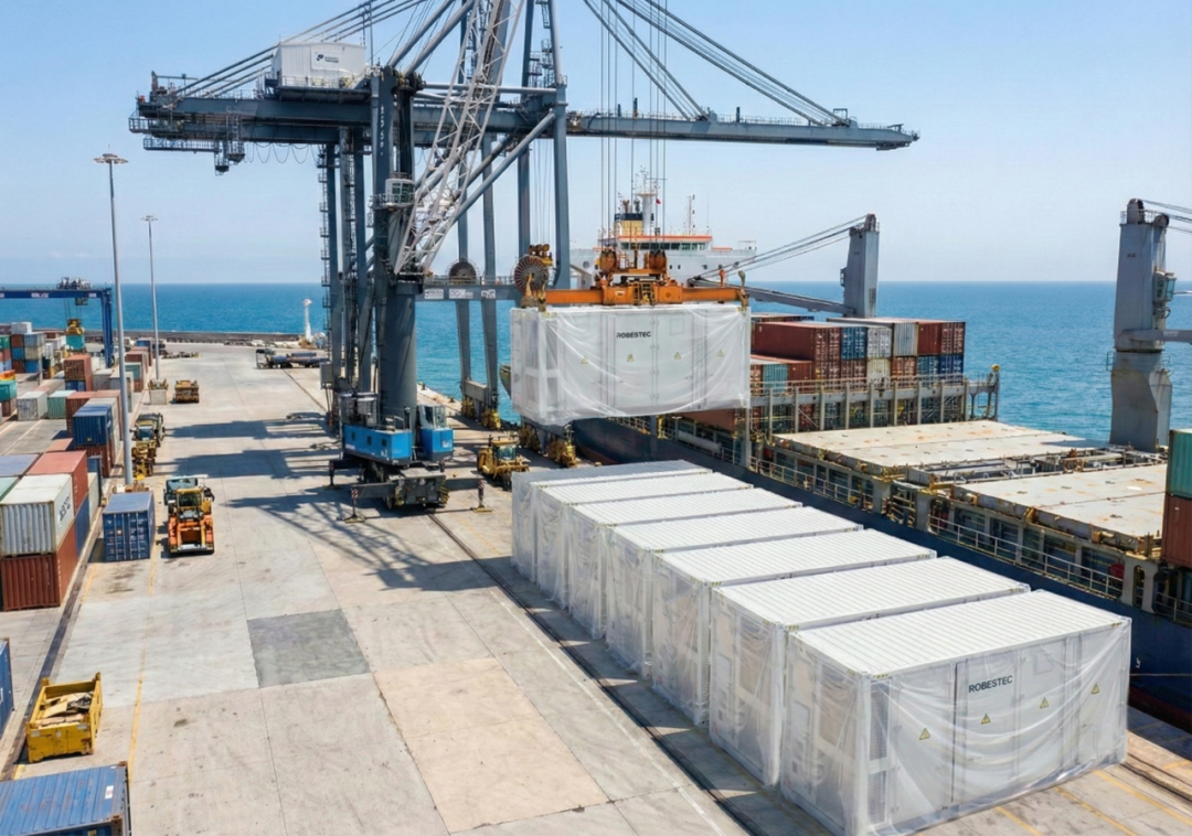 與此同時,融和元儲為西非幾內(nèi)亞贏聯(lián)盟博凱二港定制化打造的20MW/40MWh光儲電站一體化項(xiàng)目也于近期正式裝船出港,跨越重洋奔赴項(xiàng)目現(xiàn)場。