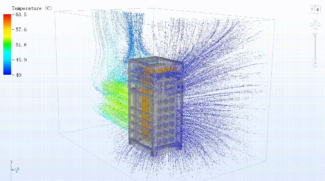 在整機(jī)設(shè)計(jì)上,采用三維立體風(fēng)道+冷熱隔離,通過CFD仿真對(duì)風(fēng)道進(jìn)行優(yōu)化,冷風(fēng)精準(zhǔn)覆蓋匯流銅排、工程接線腔等高熱區(qū)域,構(gòu)建嚴(yán)格的隔離通道,阻斷熱空氣回流現(xiàn)象。
