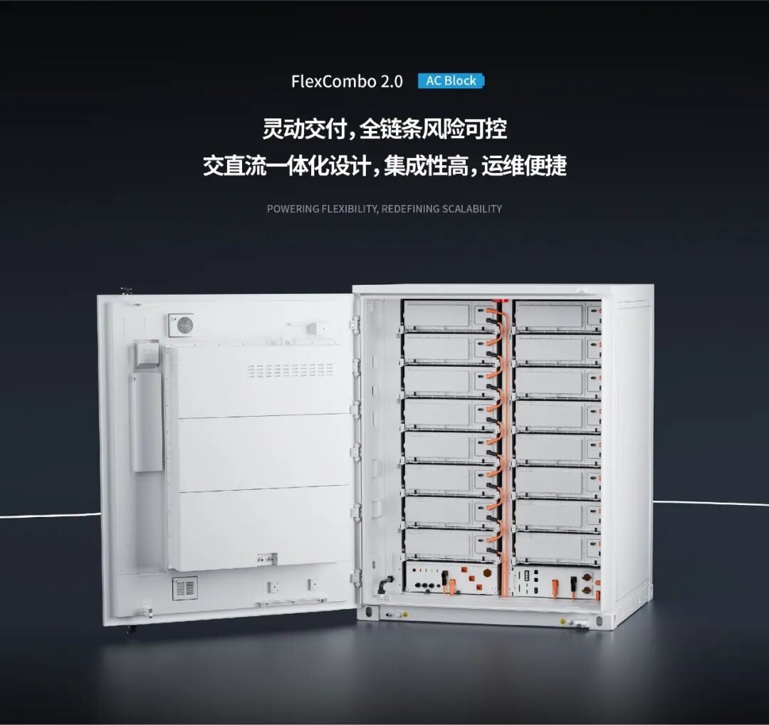FlexCombo2.0采用交直流一體化設(shè)計(jì)(AC Block),全系統(tǒng)預(yù)裝預(yù)調(diào),避免了傳統(tǒng)直流倉和交流倉分離造成的現(xiàn)場(chǎng)工程鏈路長,安裝調(diào)試慢,并網(wǎng)及售后牽扯多方設(shè)備商的問題。